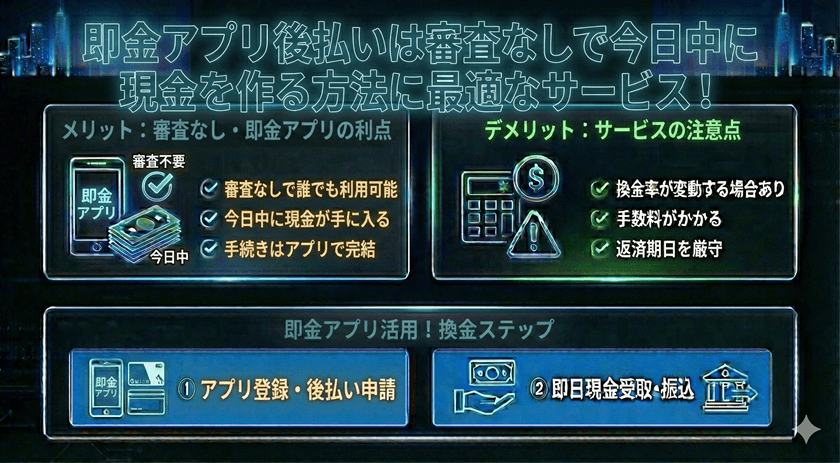 「即金 アプリ」として検索されることが多いですが、BNPLアプリの主な機能は「後払い決済」であり、原則として現金を直接借り入れる「融資」ではありません。しかし、一部のサービスでは、購入した商品や債権を現金化する手法(買取サービスやファクタリングに近い形)を提供している場合があり、これが実質的な「即金」機能として利用されることがあります。こうした利用方法は、手数料が高額になる可能性や、貸金業法との関連でグレーゾーンに当たるリスクを含むため、慎重な検討が必要です。