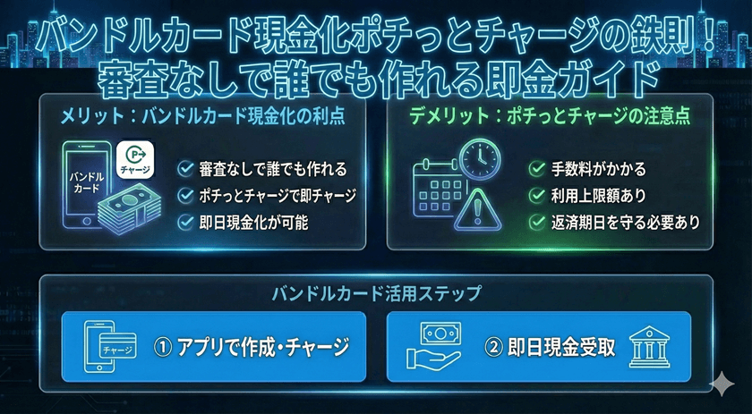 バンドルカードは、手軽に利用できるVisaプリペイドカードとして広く普及しています。特に後払い機能「ポチっとチャージ」の利便性から、緊急時の資金調達手段として「現金化」を検討するユーザーも少なくありません。バンドルカードの仕組みと、現金化がもたらす重大なリスク、そして規約に違反しない安全な利用方法について解説します。